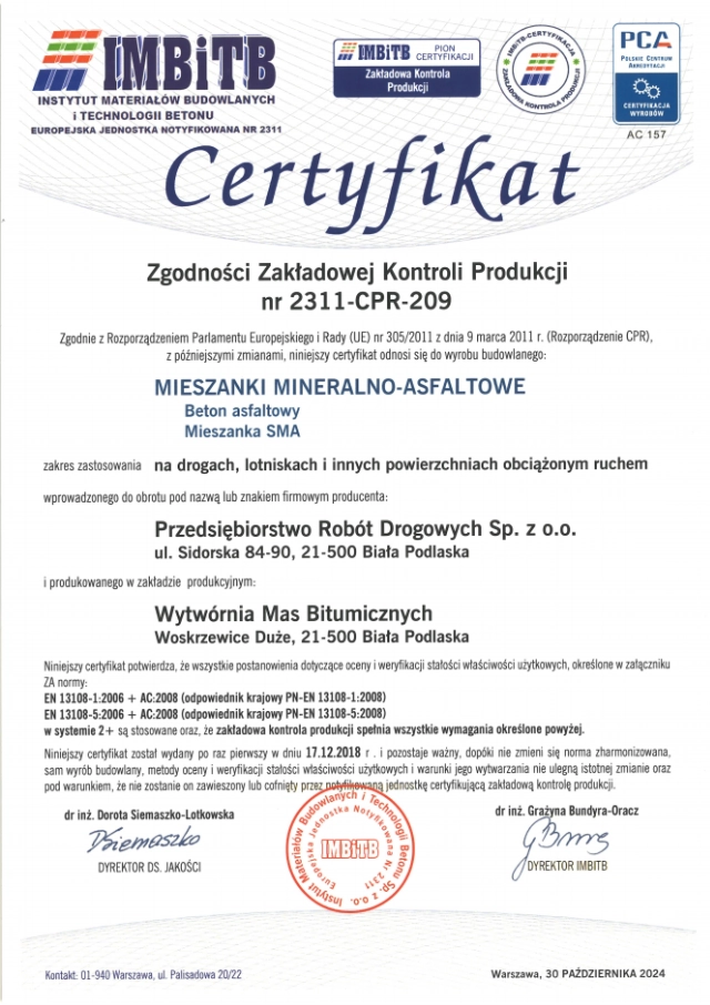 Wysokiej klasy kadra techniczna i nadzór laboratorium drogowego dają gwarancję wysokiej jakości wykonywanych robót.